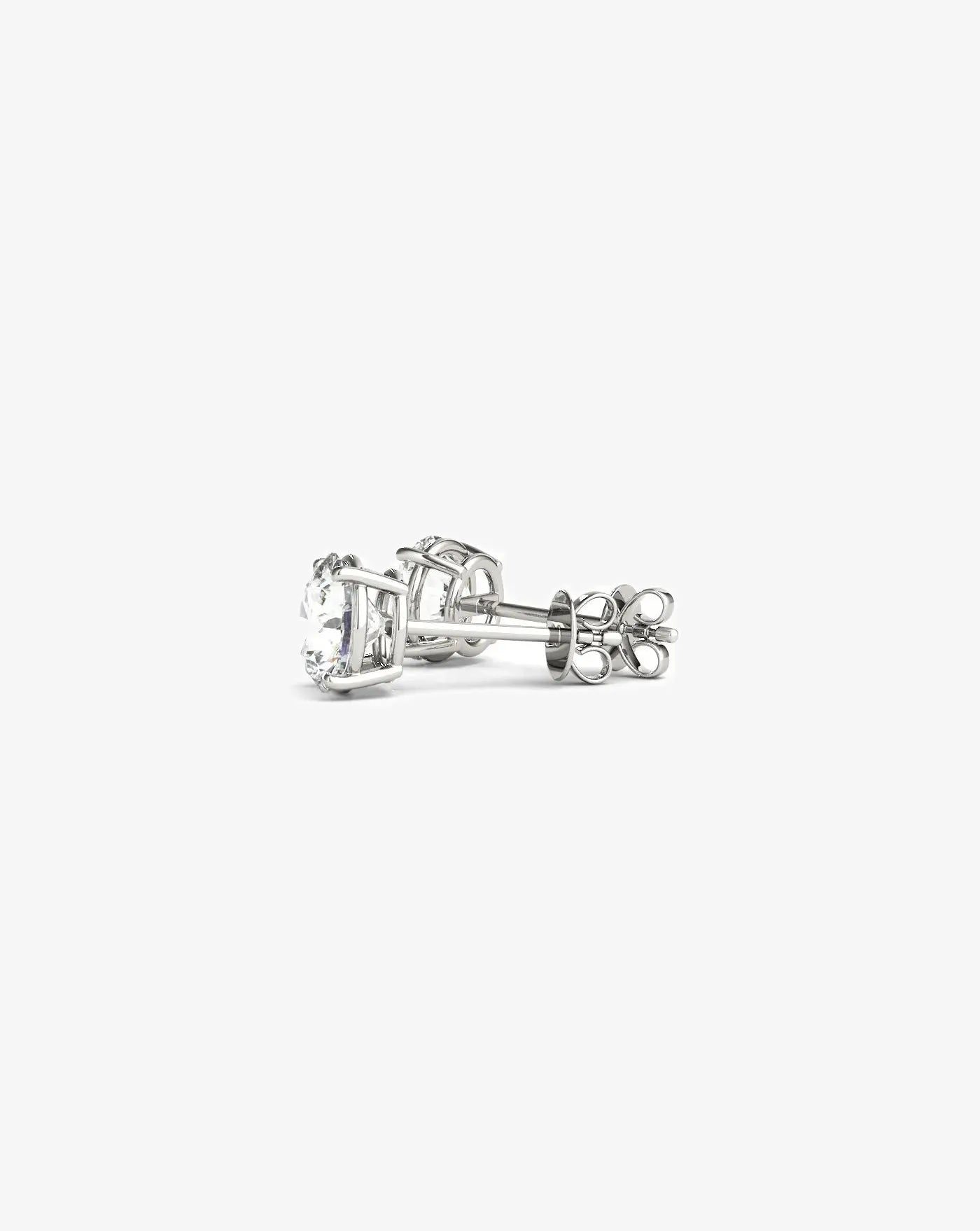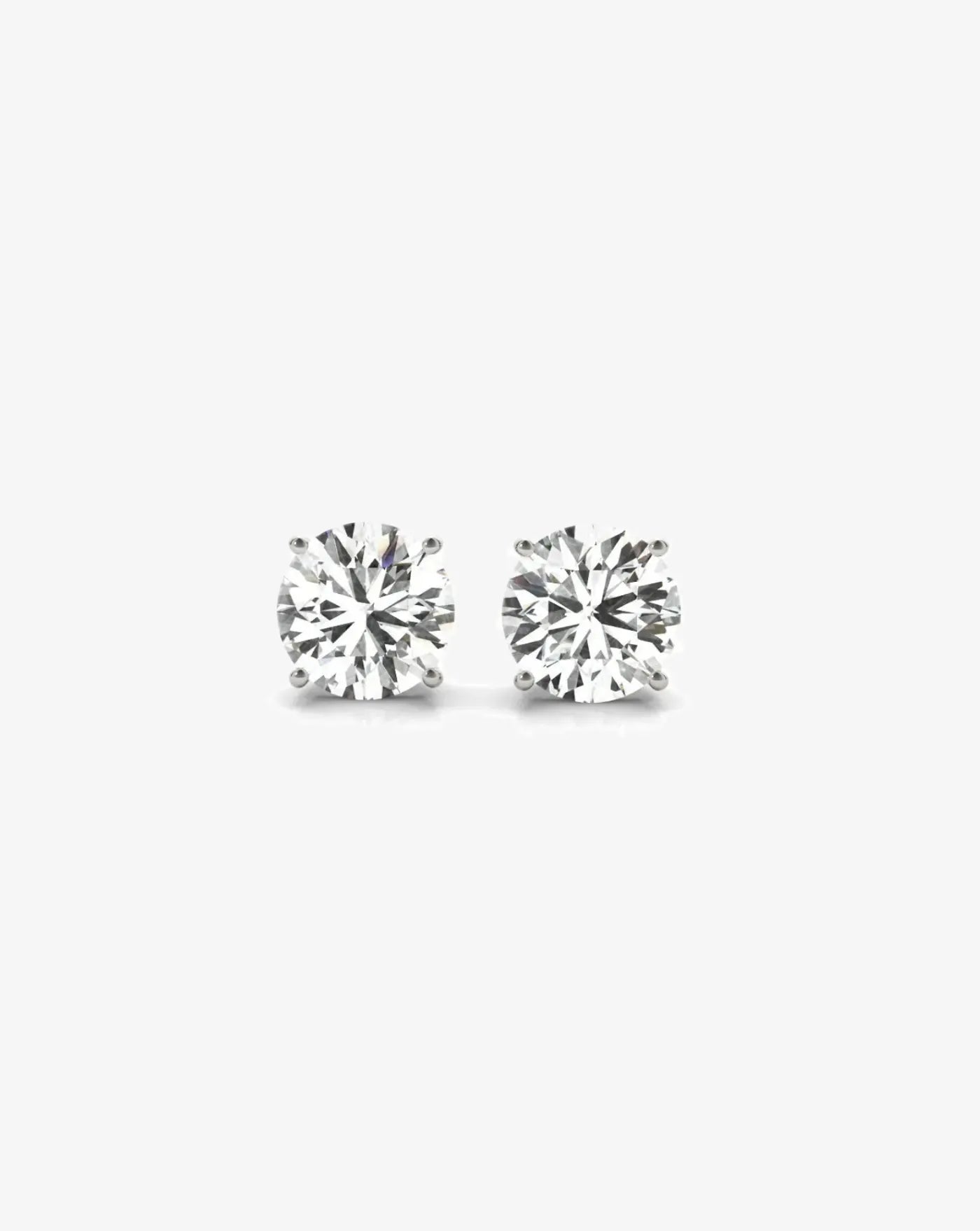 These elegant round diamond stud earrings feature lab-grown diamonds in a classic round shape, set in smooth bezel settings for a sophisticated and timeless design.