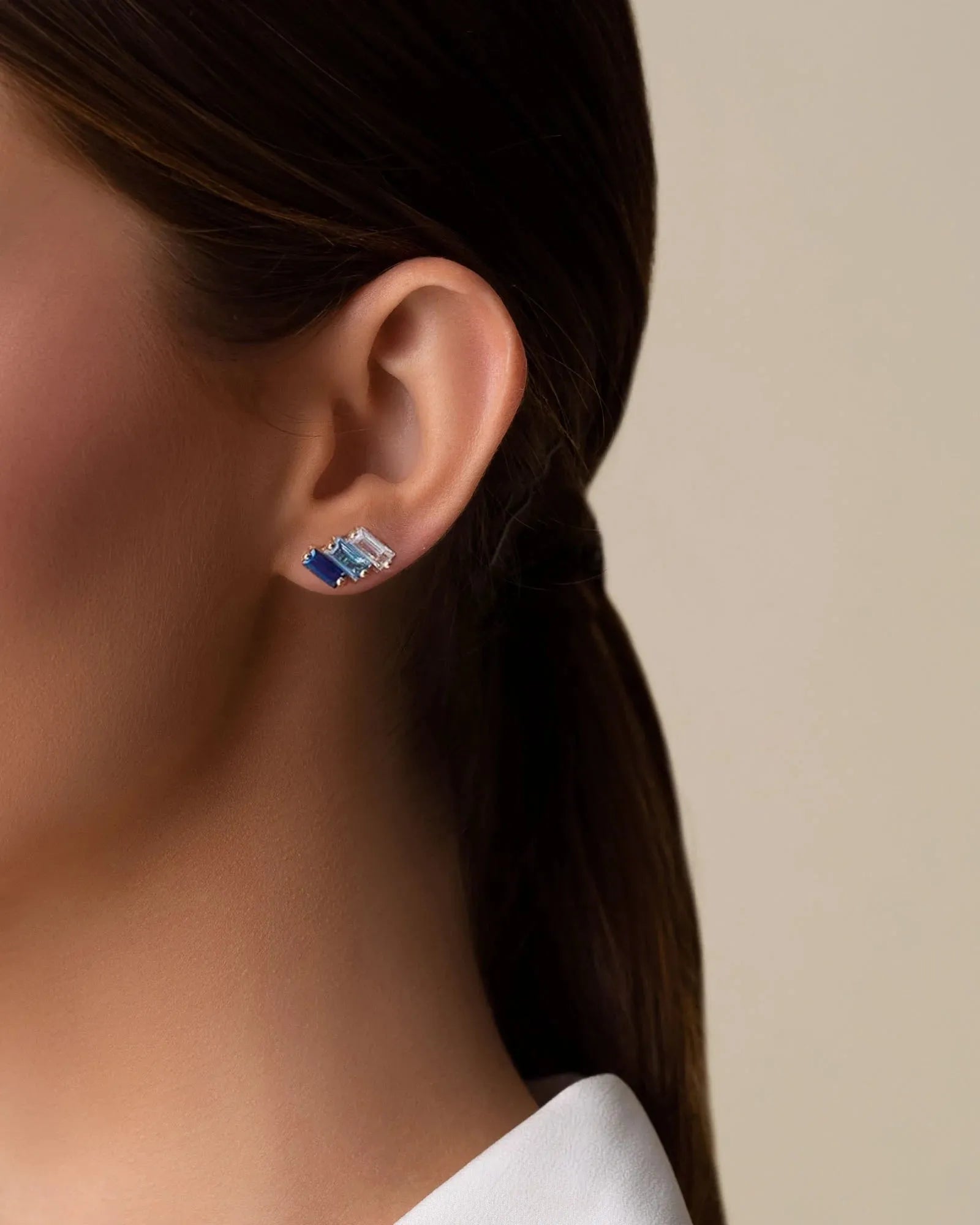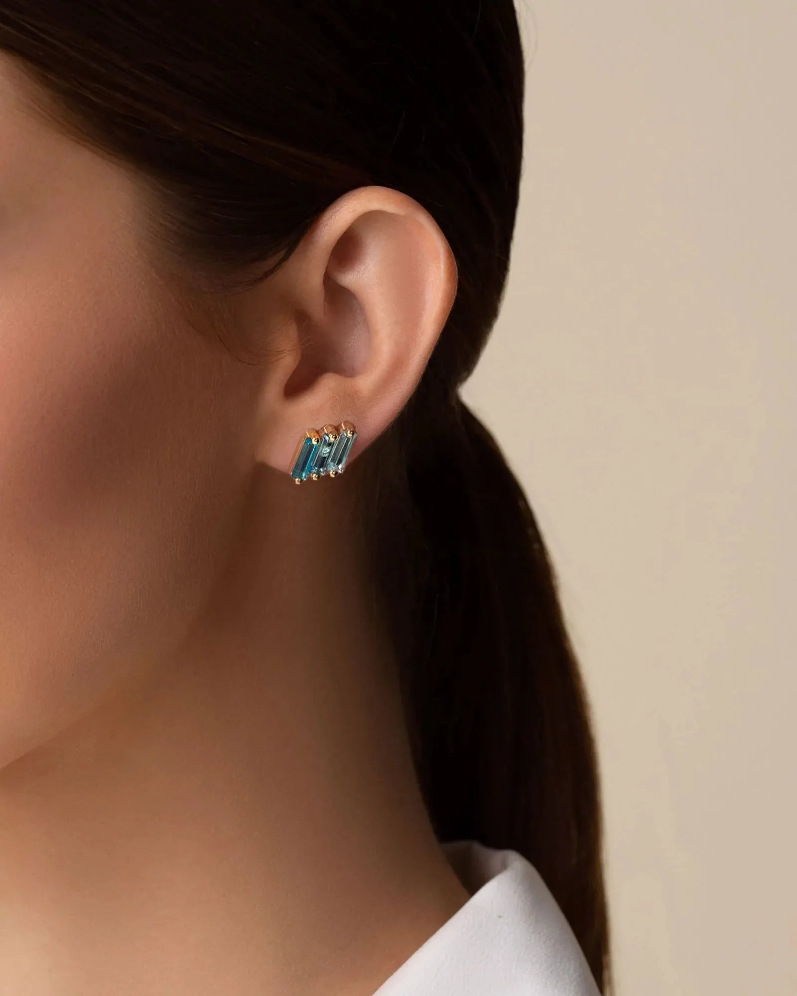 Add a touch of charm with this delightful design featuring small baguette-cut blue ombre gemstones—perfect for layering! Enhance your ear stack by choosing from our variety of gemstone color options.