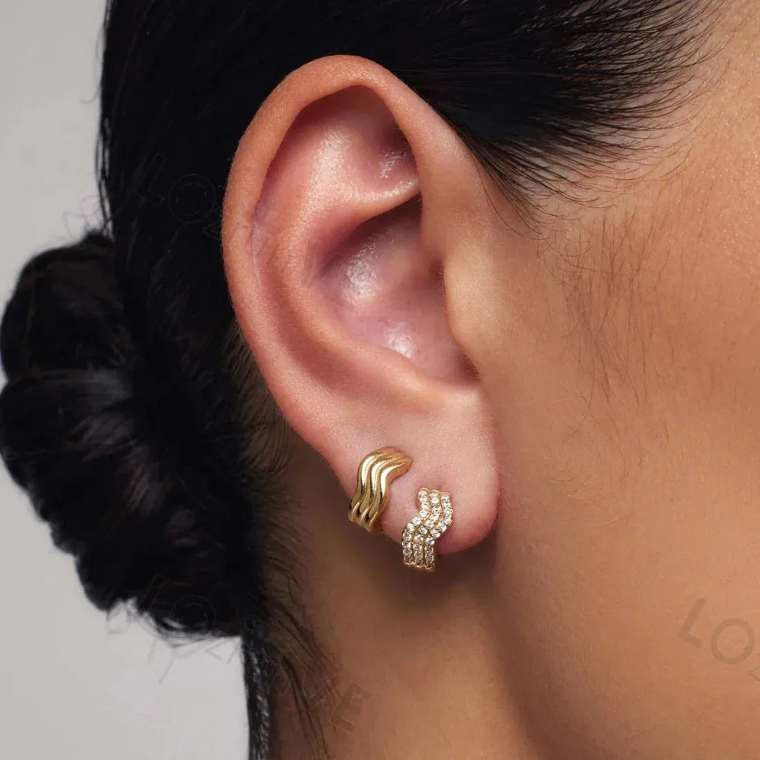 Elevate your look with these stunning hoop earrings, crafted from 925 sterling silver or 10K, 14K, or 18K gold. These designer-inspired Wave Bold Huggie Hoop Earrings are the perfect accessory to showcase your personal style. Whether you prefer a sleek and minimalistic look or want to make a bold statement, these earrings will compliment any outfit. Experience luxury and elegance with these high-quality, versatile earrings.