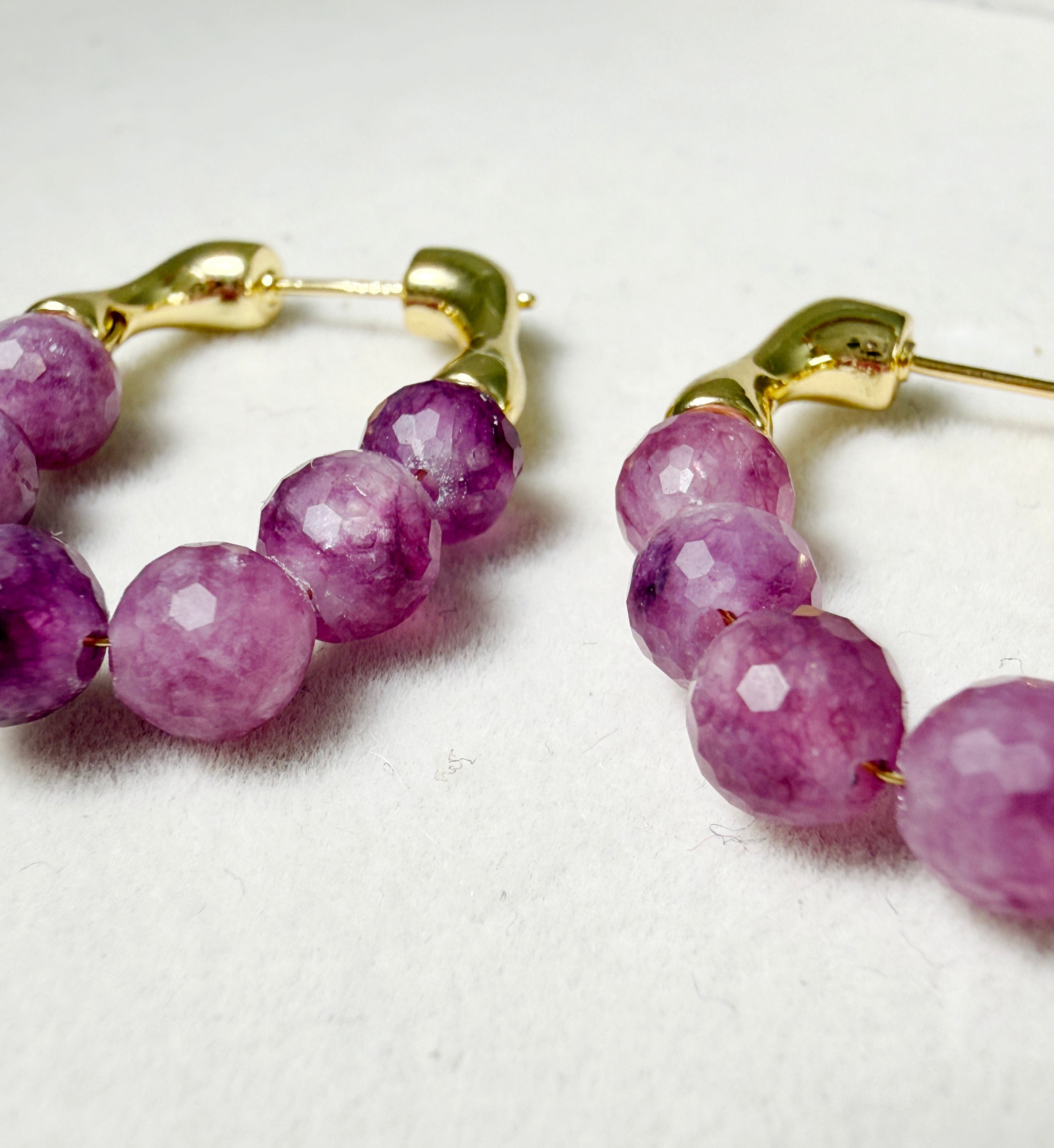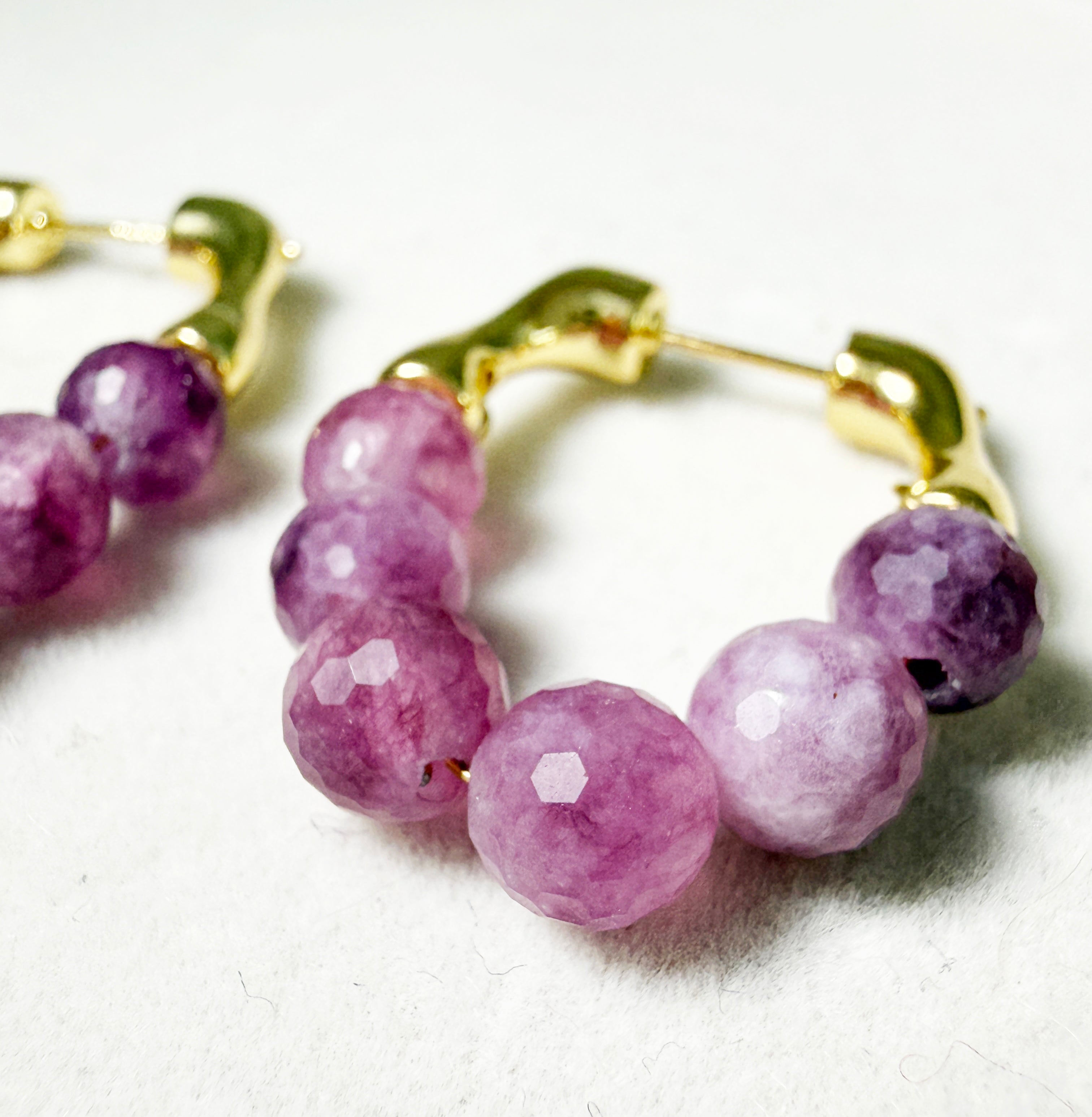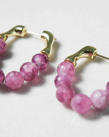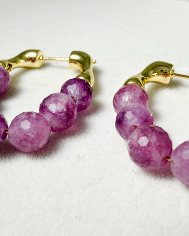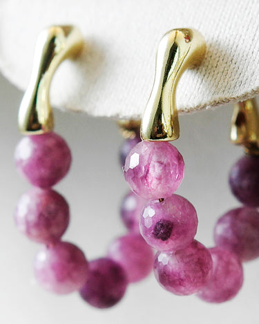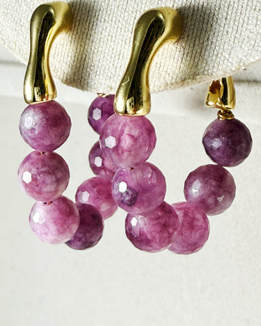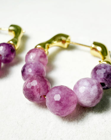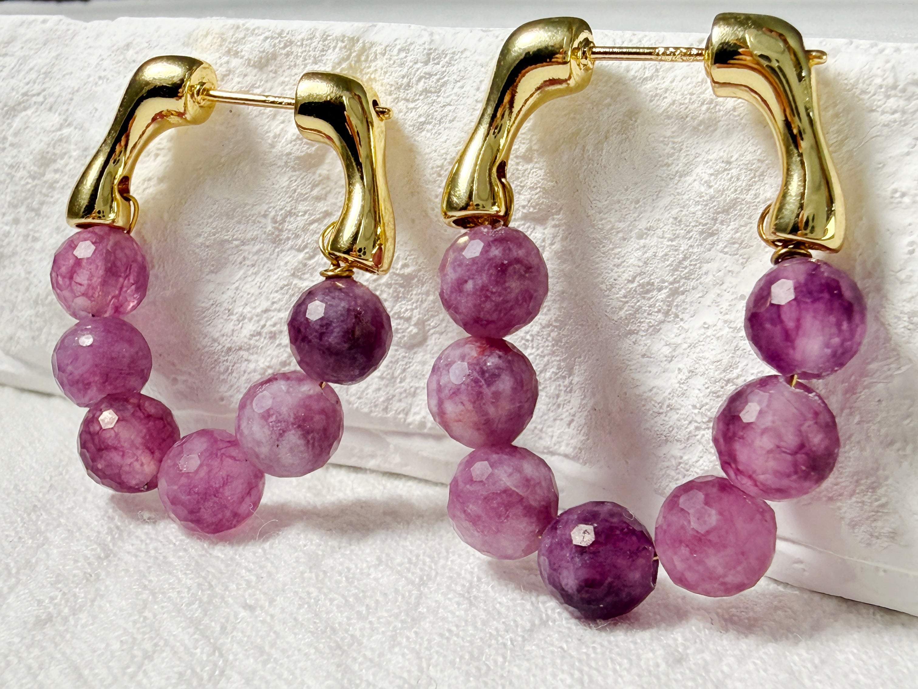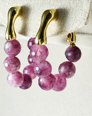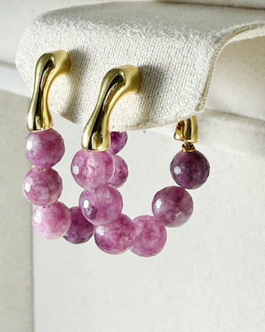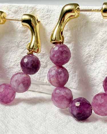 Bring a touch of natural elegance to your look with these handcrafted Watermelon Tourmaline Hoop Earrings. Each bead is individually faceted by hand, showcasing a gradient of purplish-pink tones that resemble freshly peeled grapes — juicy, vibrant, and full of character.