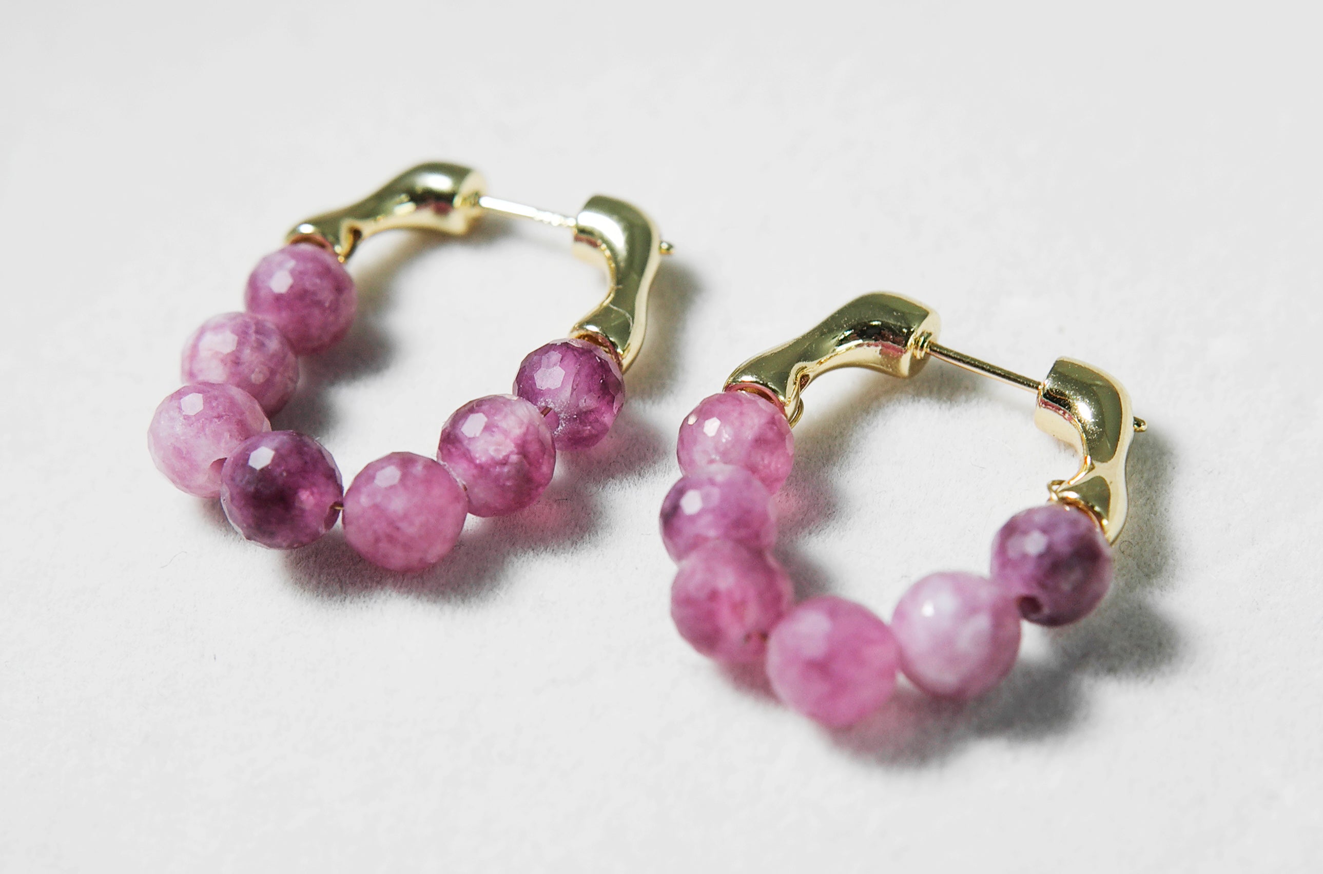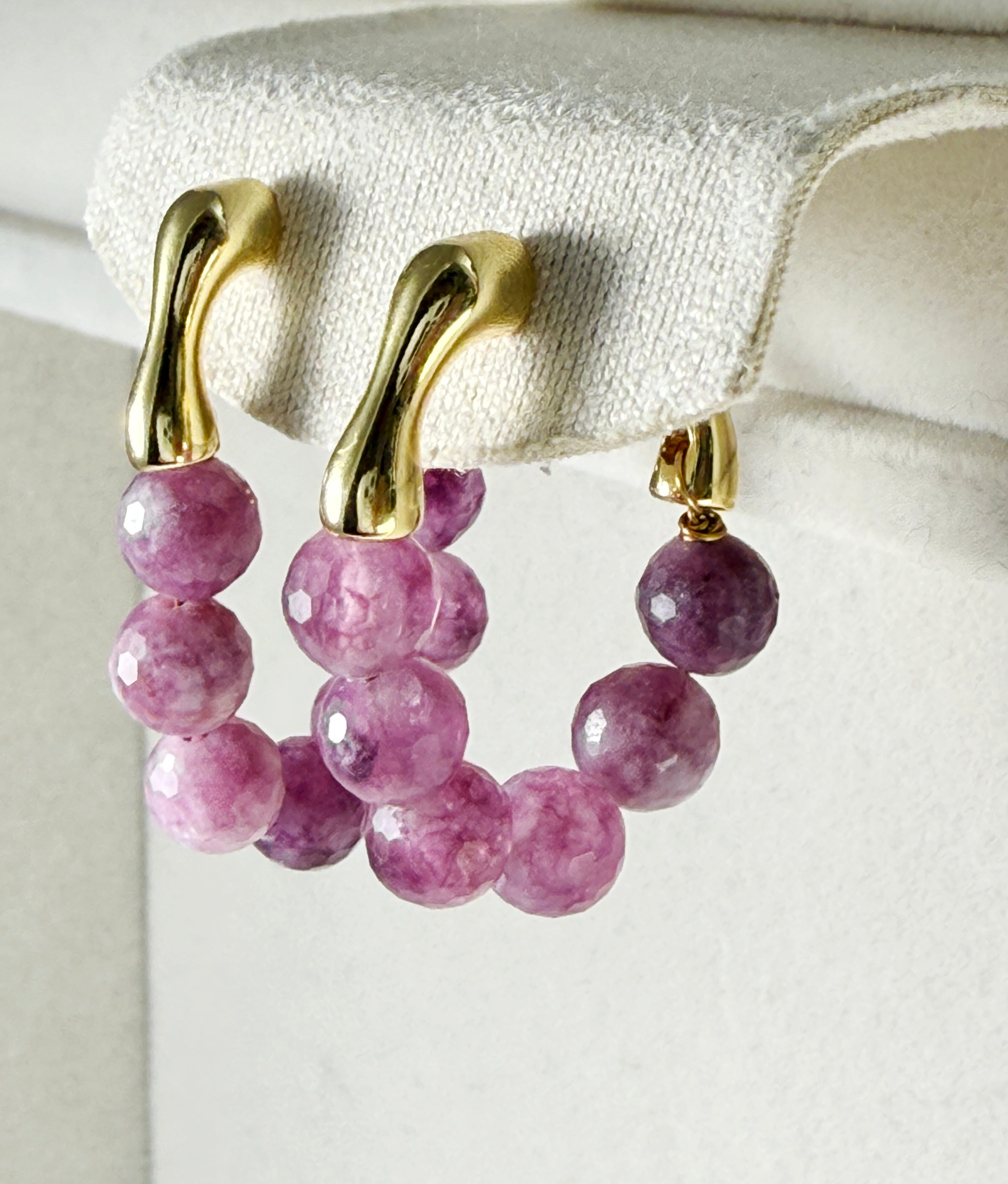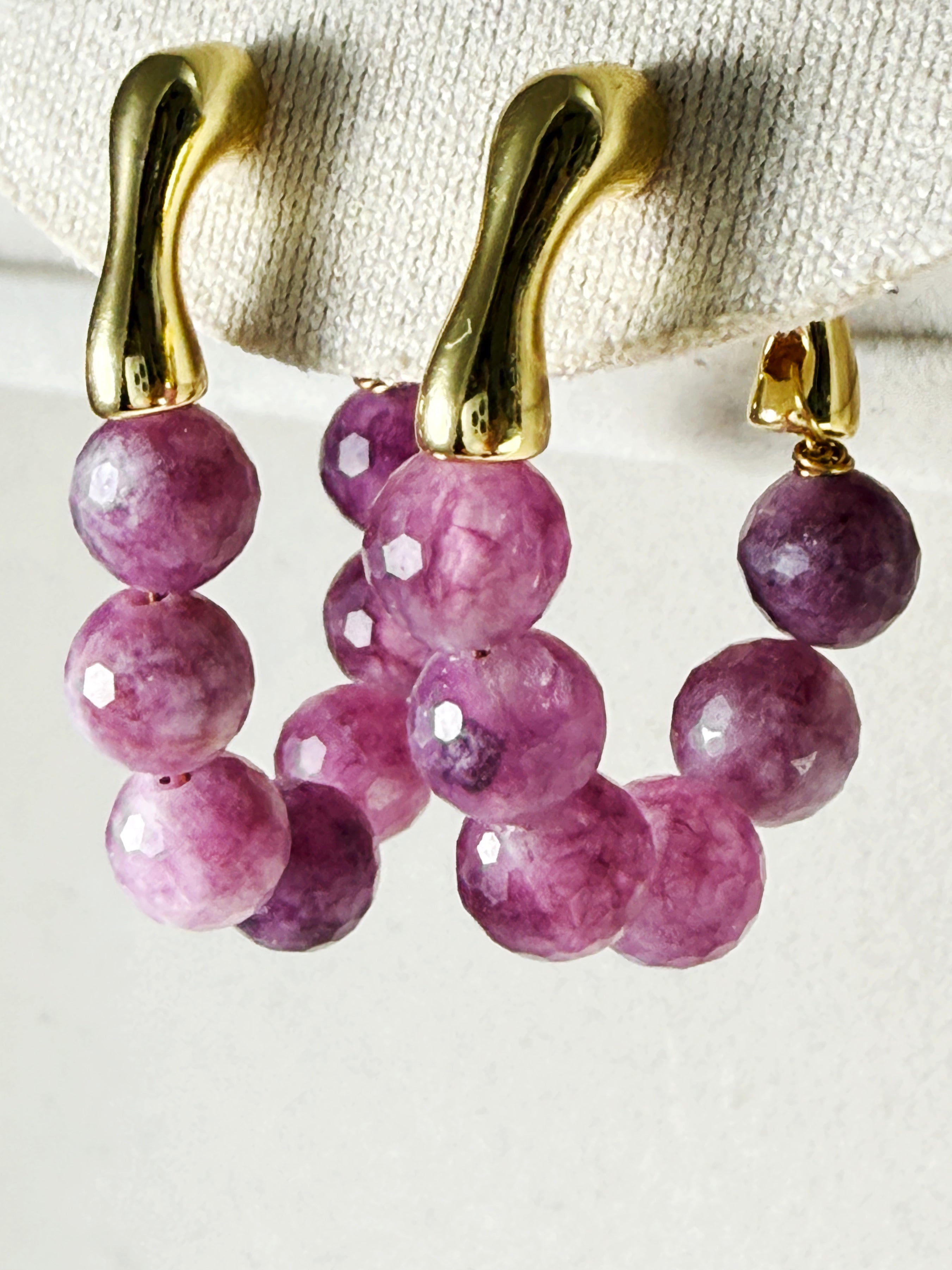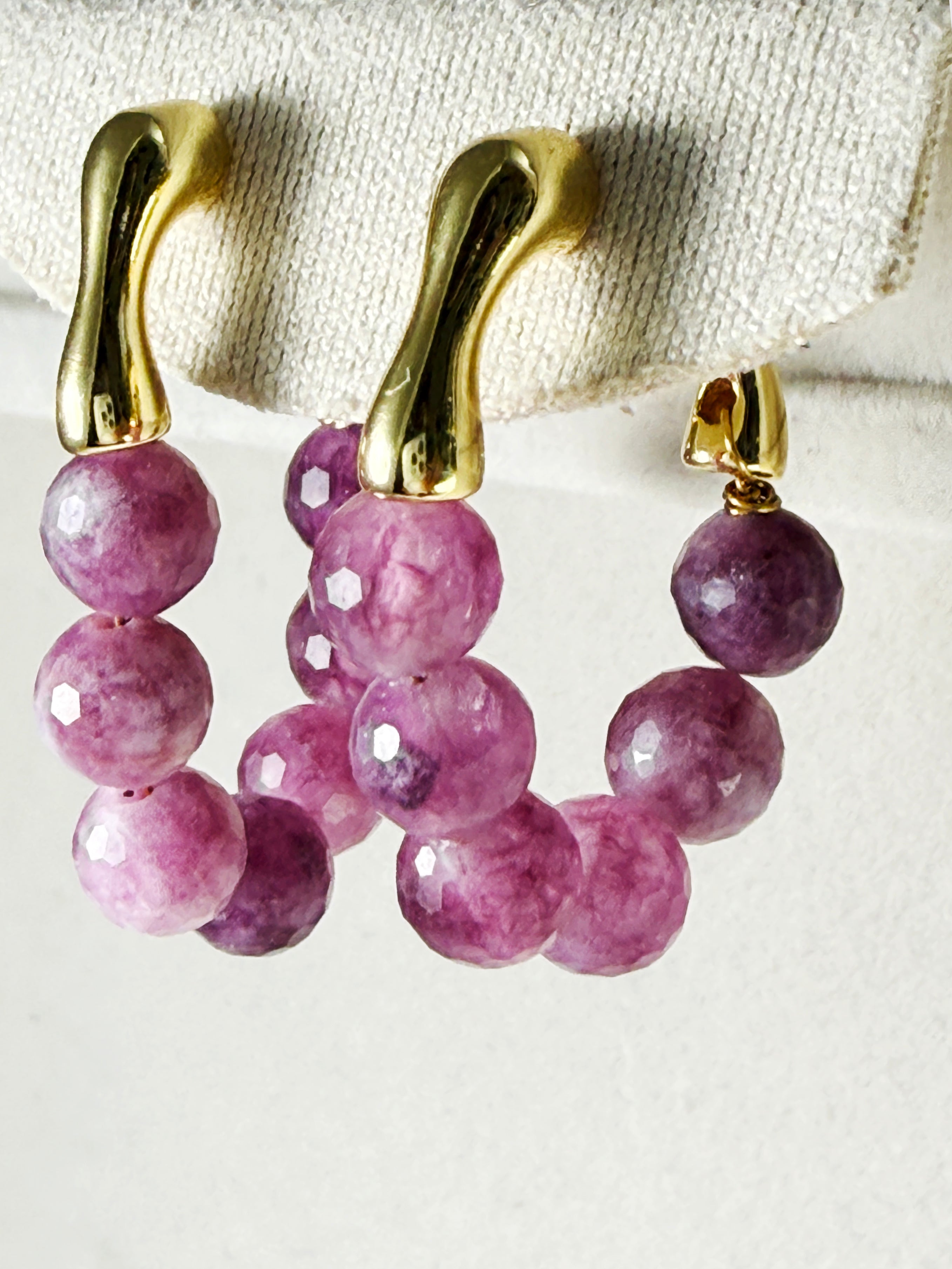 Bring a touch of natural elegance to your look with these handcrafted Watermelon Tourmaline Hoop Earrings. Each bead is individually faceted by hand, showcasing a gradient of purplish-pink tones that resemble freshly peeled grapes — juicy, vibrant, and full of character.