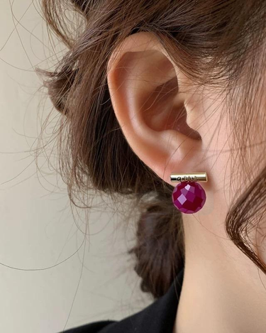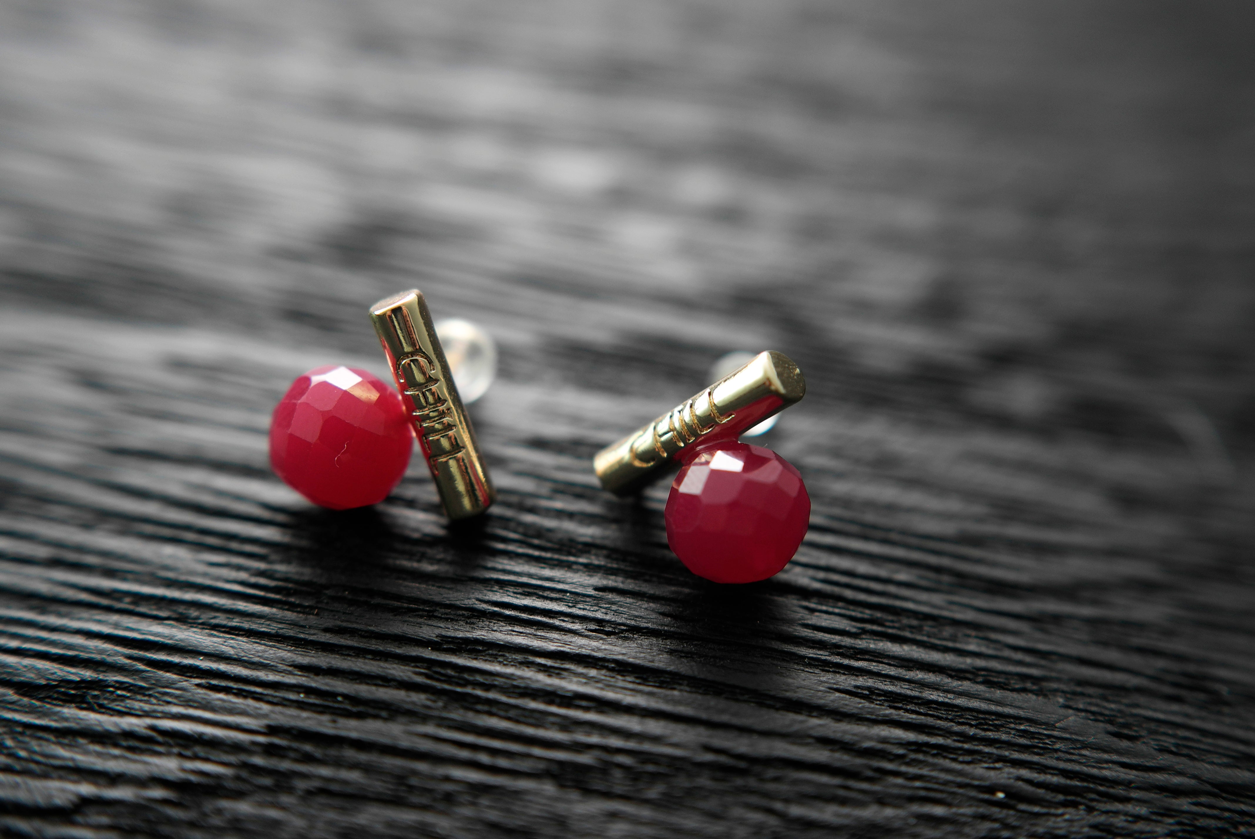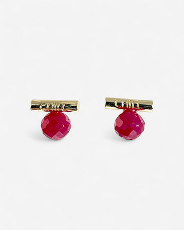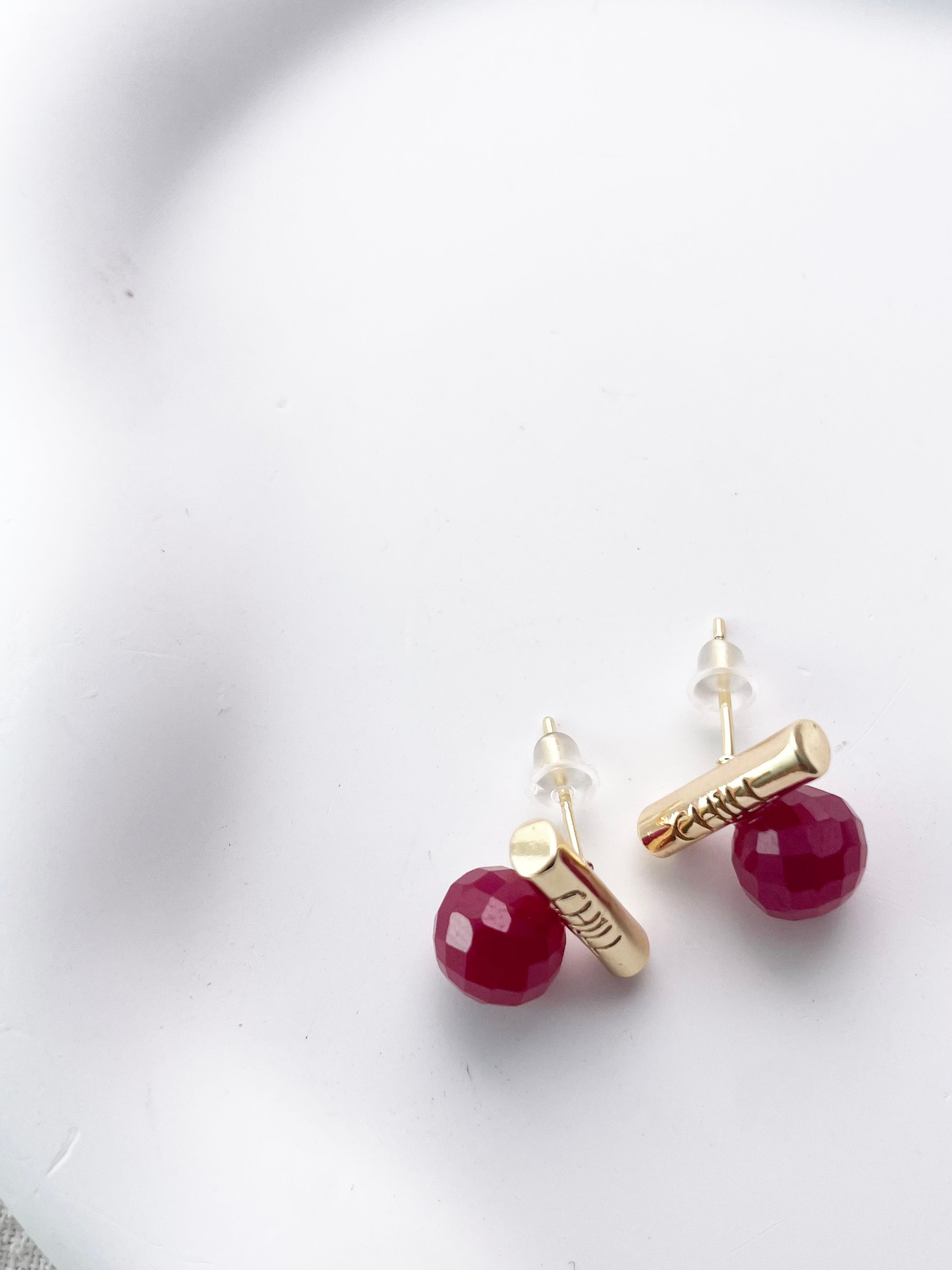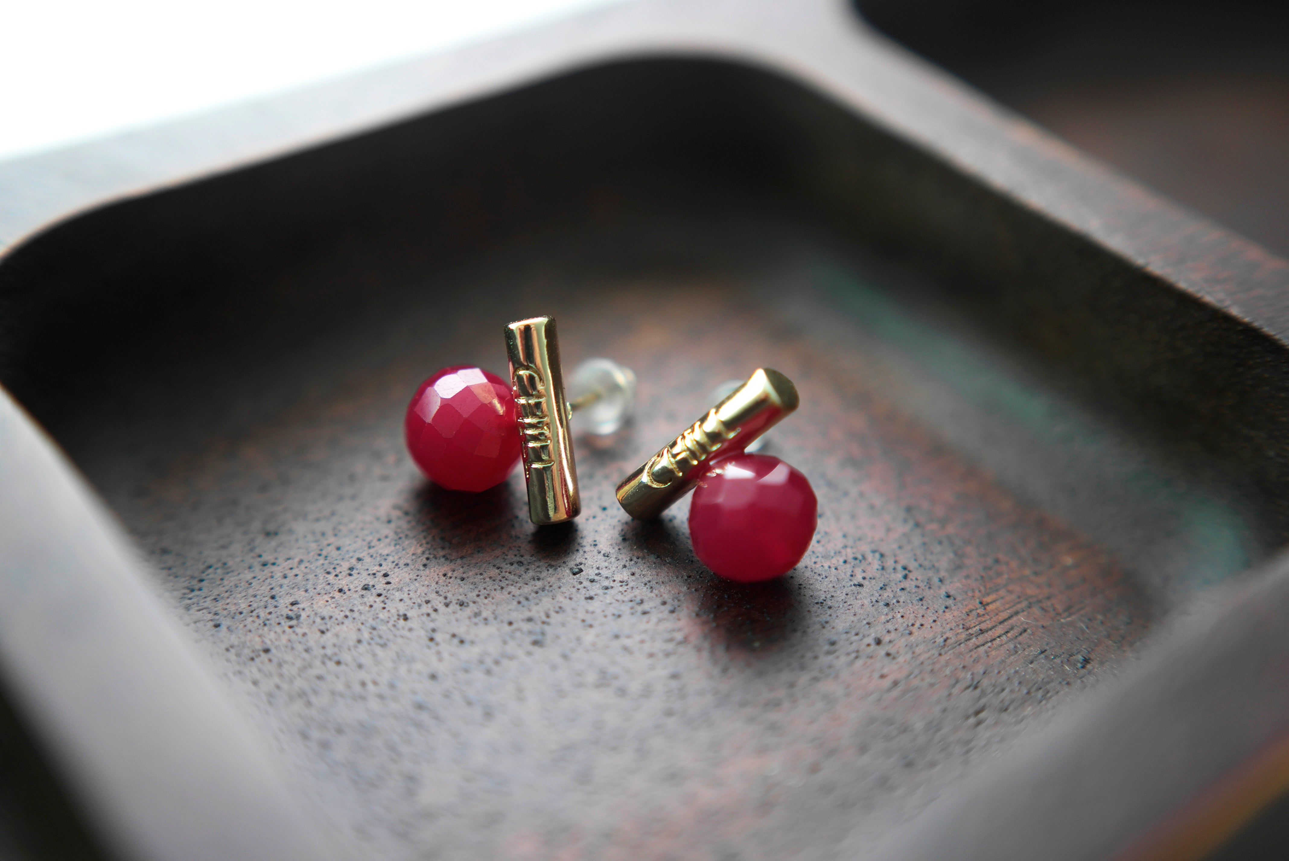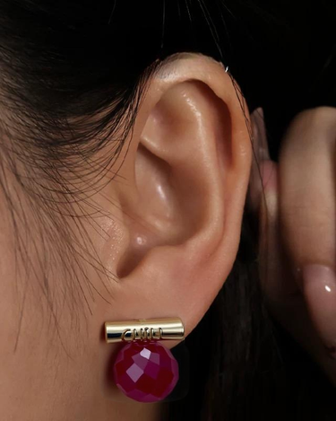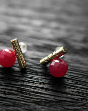 These faceted lab-grown rubies are full of vibrant color and energy, symbolizing strength, passion, and deep affection. Each gemstone is individually handcrafted and paired with a minimalist "CHILL" bar in your choice of silver or gold tone.