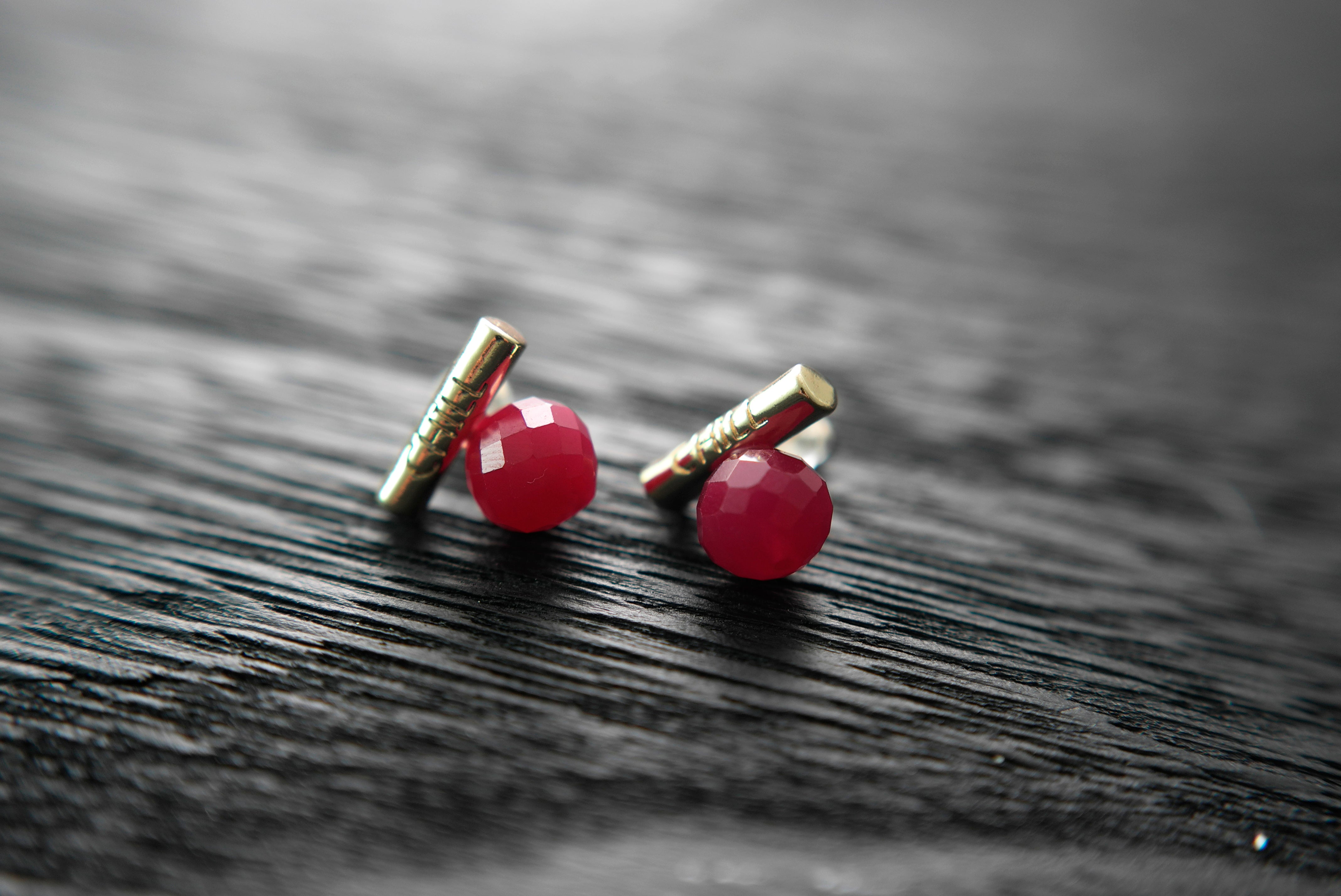 Handmade Lab-Grown Ruby Stud