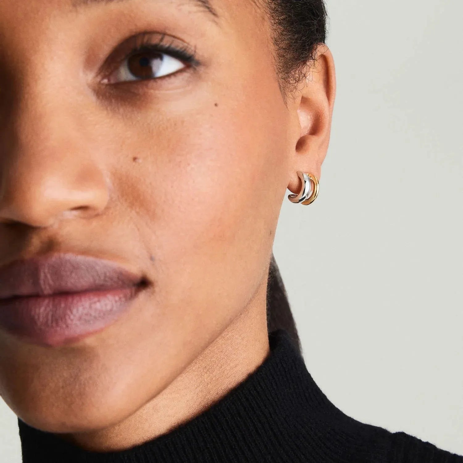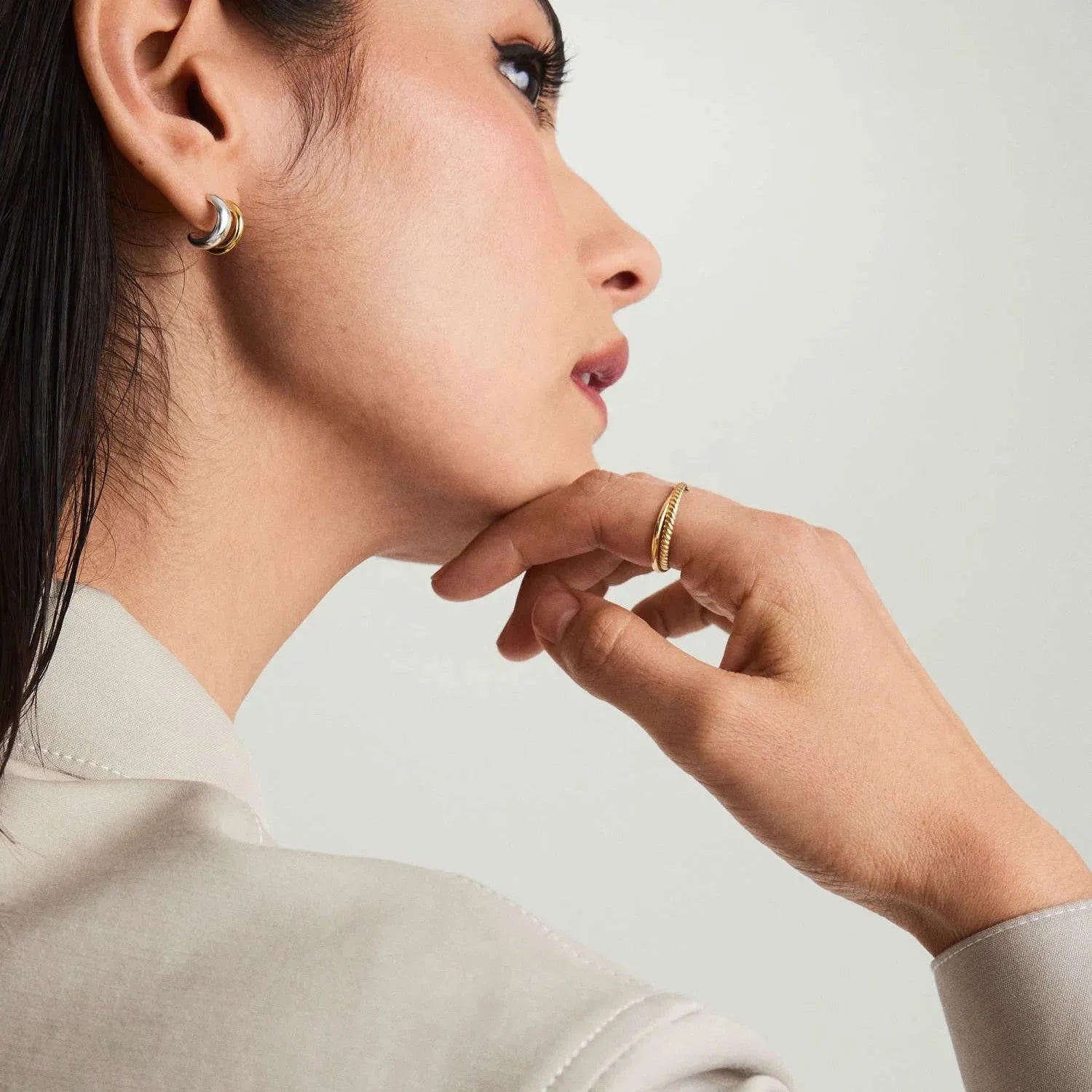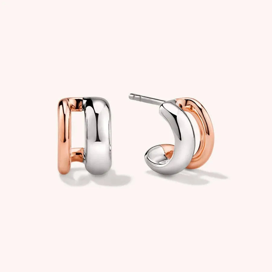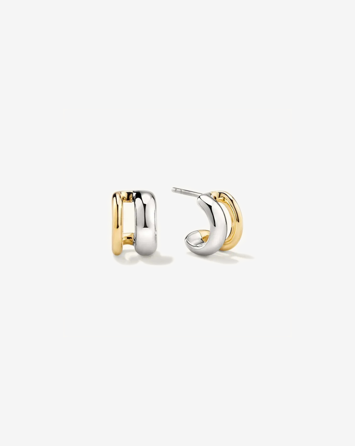 Complete your look with a touch of elegance. These chunky dome double open hoop earrings are made from high-quality sterling silver 925 with a touch of gold. You'll love the way they elevate any outfit with their classic style and expert craftsmanship. These hoops are the perfect addition to any jewelry collection, giving you a timeless piece that you can wear for any occasion.