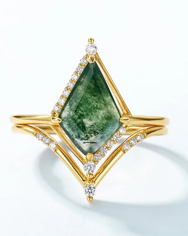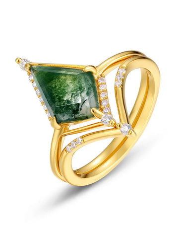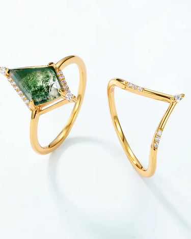 Moss Agate Engagement Ring with kite cut Stackable