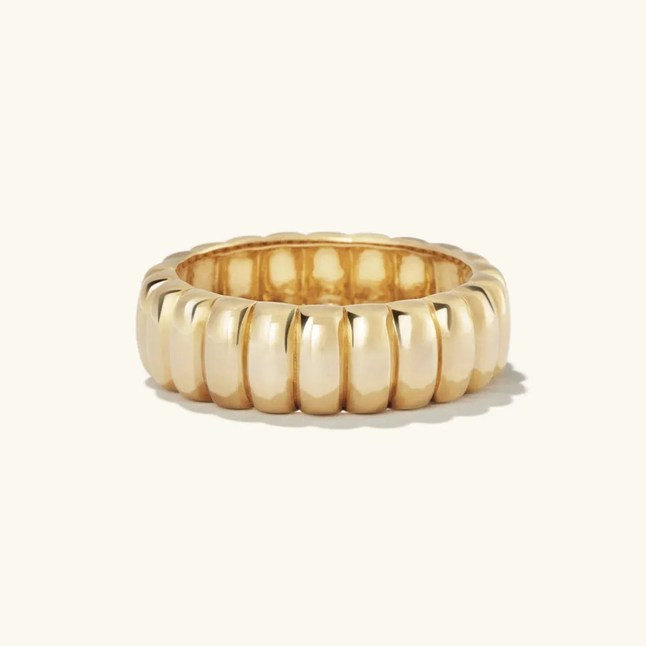 A sleek, gold band with a rounded dome design, offering understated luxury perfect for everyday wear or special occasions.