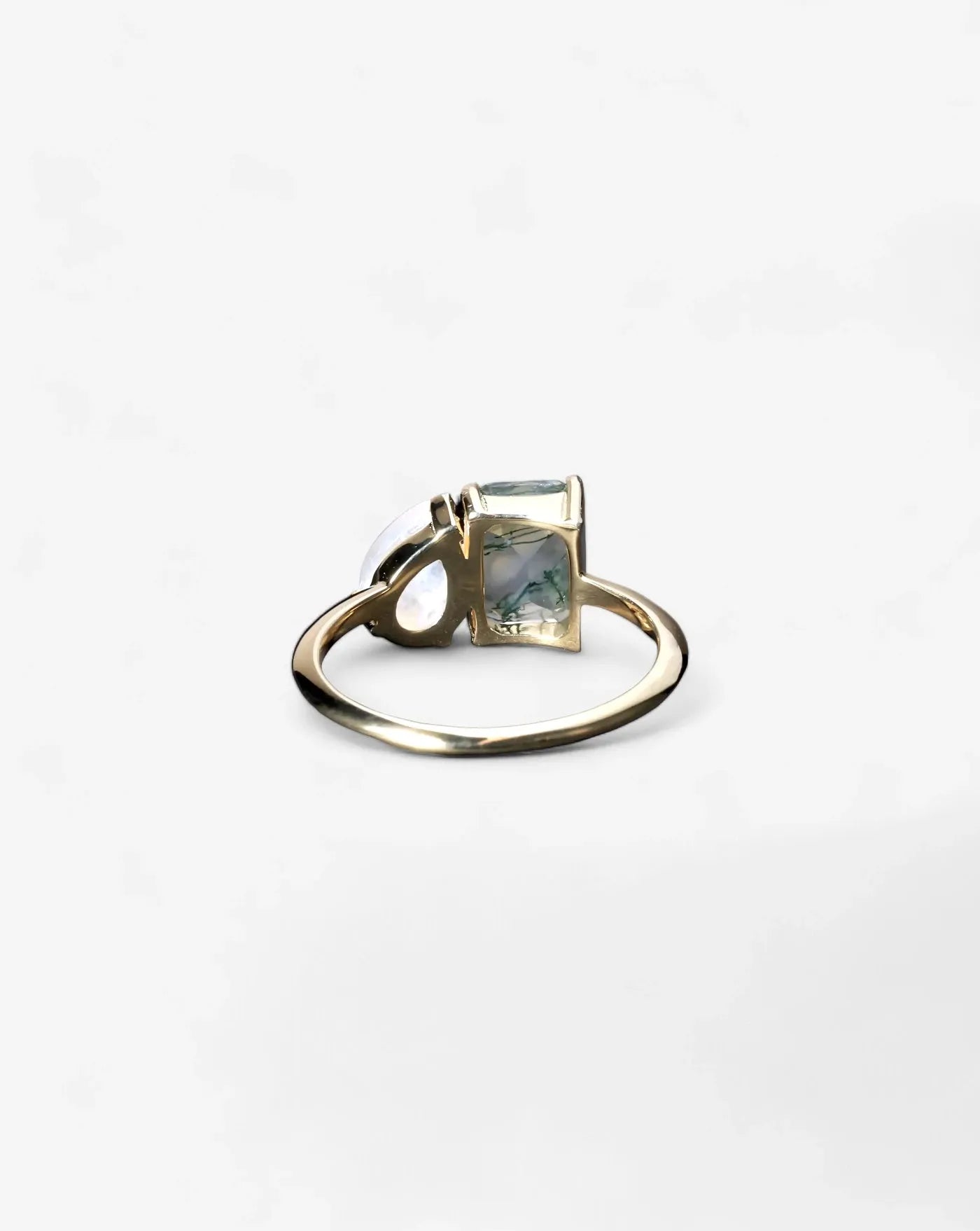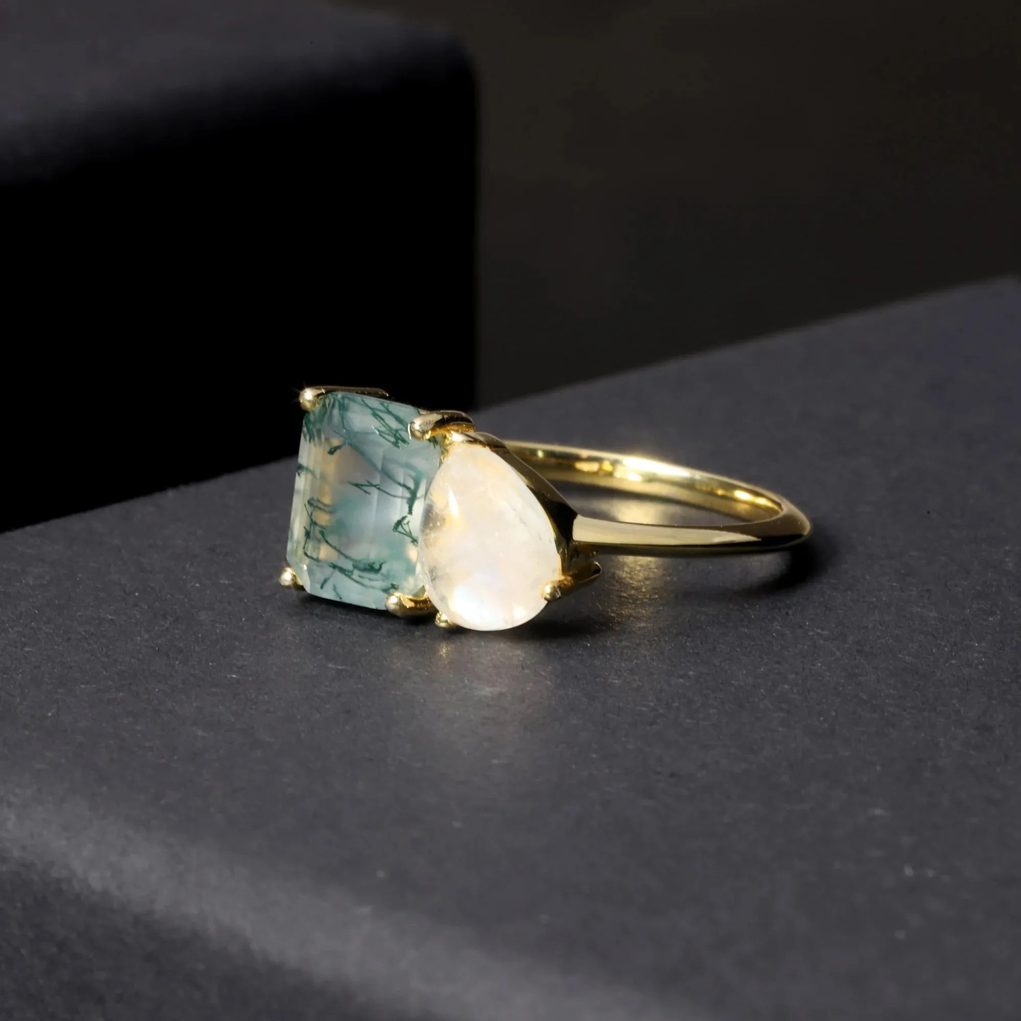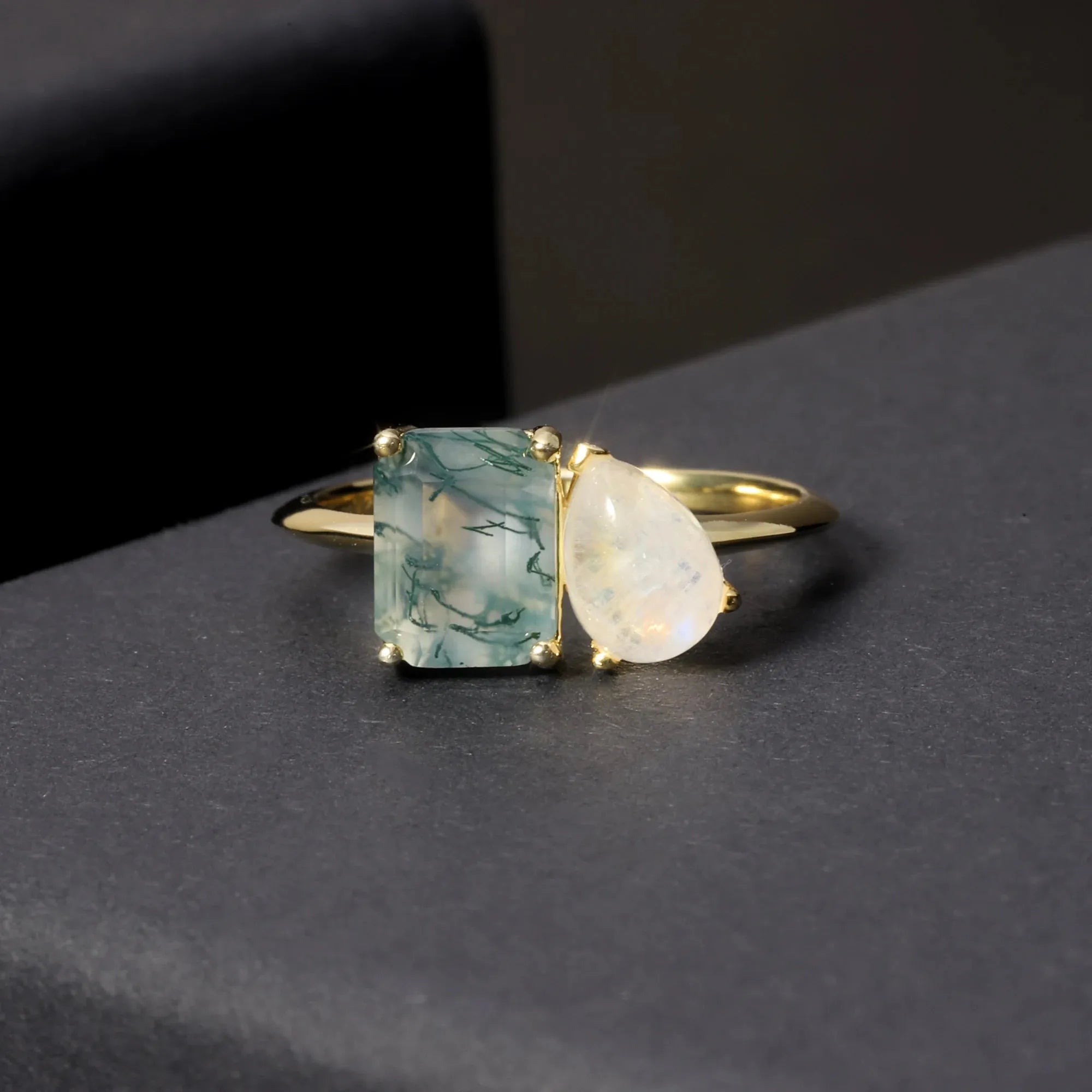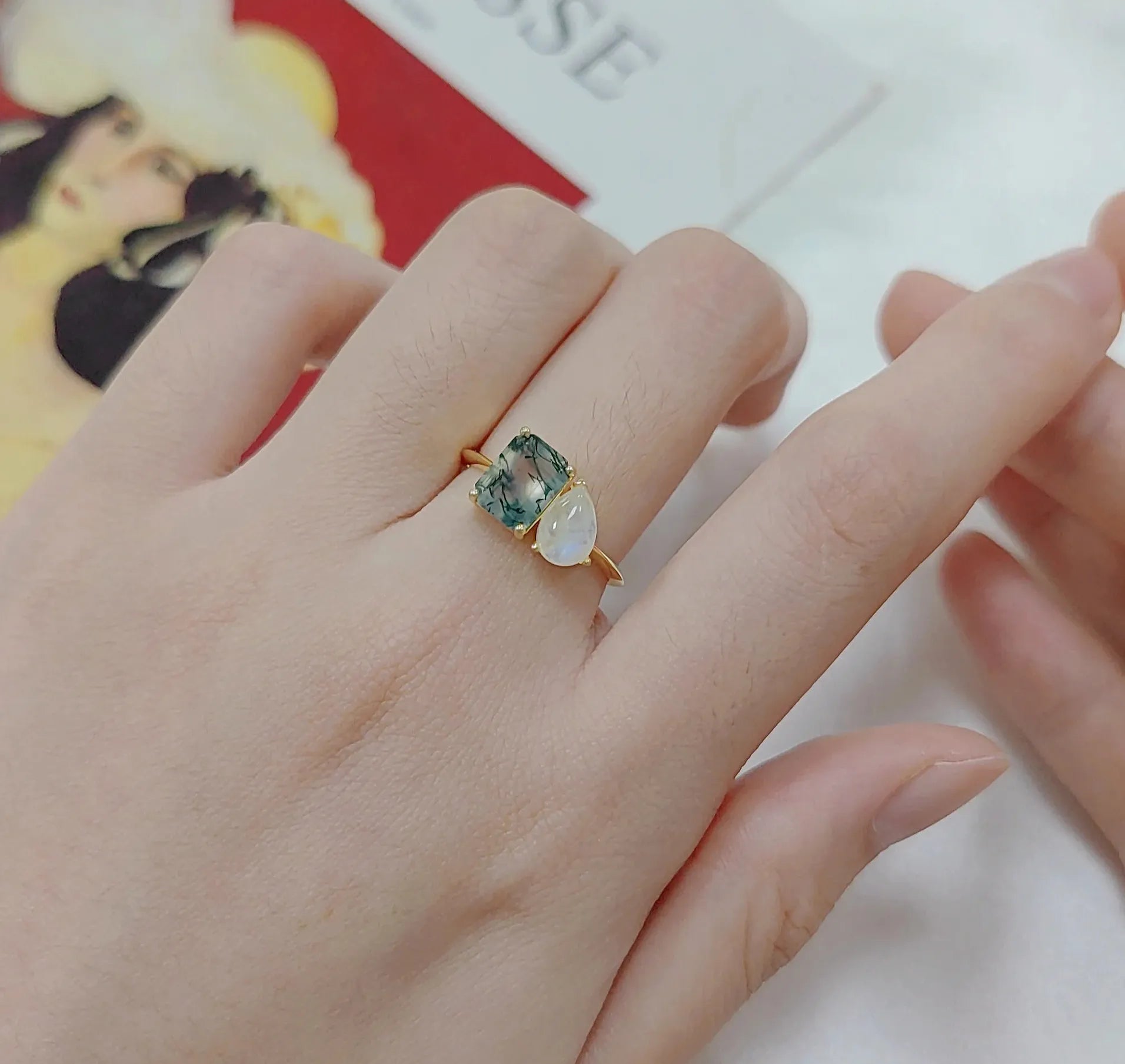 Moss agate is like a miniature underwater painting, condensing the beauty of nature on your fingertips. The Moss Agate Ring setting is exquisite and elegant, with green waterweed dancing in the agate, like a dreamlike existence.